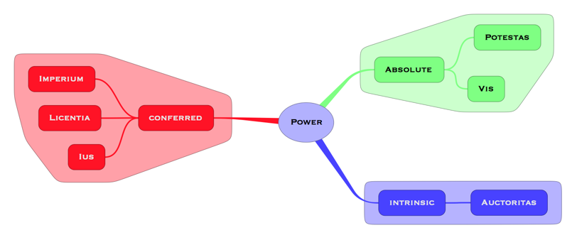 Power can be exercised in a variety of ways and understood in an even larger variety of ways. There is probably no single exhaustive taxonomy of power available for human analysis and discussion; the Romans, however, may have come close to creating one, and in default of anything better, we will here use their general vocabulary of power as a way of identifying and describing how power operates, what its perceived sources are, and what its consequences might be.